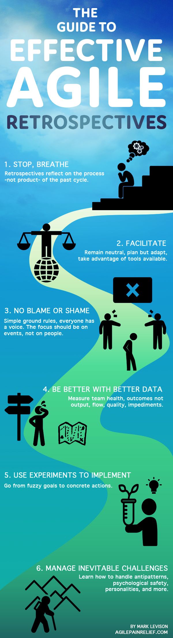Why this book? Because Mark was failing at Sprint Retrospectives before it was popular. After years of study and experimentation, his findings are now collected in this Guide so you don’t have to have to suffer the same pain.